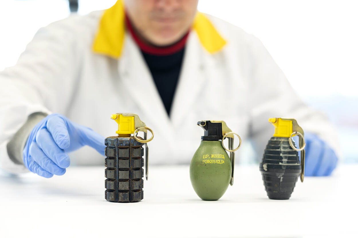 Explosies en Explosieven onderzoekt ook bommen die niet zijn afgegaan, zoals een handgranaat die als dreigmiddel of als afpersingsmiddel aan iemands buitendeur is achtergelaten. De Explosieven Opruimingsdienst Defensie (EOD) haalt deze explosieven veilig uit elkaar en brengt deze ontmanteld naar het NFI. “In Nederland mag alleen de EOD intacte explosieven ontmantelen. Wij krijgen dus alleen maar veilig gemaakte explosieven. Is het te gevaarlijk voor de EOD om een explosief te demonteren dan laten ze het op een veilige plek ontploffen en krijgen we röntgenopnames en monsters”, vertelt Hulsbergen.
