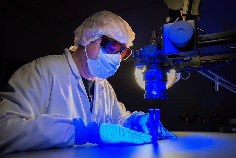 “Vaak bekijken sporenonderzoekers van de verschillende deskundigheidsgebieden die we in huis hebben gezamenlijk wat de beste volgorde is van de onderzoeken. Dit om het meeste uit een spoor te kunnen halen en elkaar niet in de weg te zitten. Het is een groot voordeel dat bij het NFI veel verschillende deskundigen in één gebouw bij elkaar zitten. Als we bij een vingersporenonderzoek bijvoorbeeld vezels of glassplinters vinden, kan binnen een paar minuten een deskundige op dat gebied bij ons in de onderzoeksruimte staan”, vertelt Koomen.