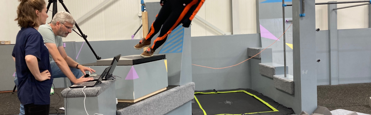 In order to gain a better understanding of the falling behaviour of real people and to be able to compare it with the way the model falls, the researchers conducted fall tests with test subjects. The fall tests involved subjects jumping, falling or being pushed from a height of 2.5 metres.