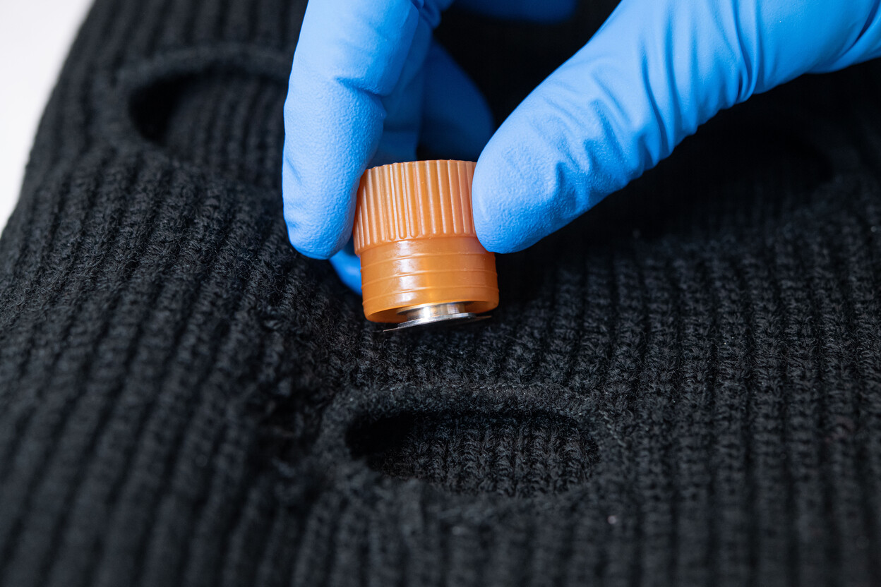 Onze DNA-onderzoekers werken met handschoenen aan. Ze hebben een haarnetje op en een mondkapje voor. Zo komen er geen sporen van de onderzoeker op het spoor dat ze hebben gekregen van de politie. Het is ook een hele kunst om sporen als haren of speeksel te vinden op kleding. Daarvoor worden sporenonderzoekers speciaal opgeleid.