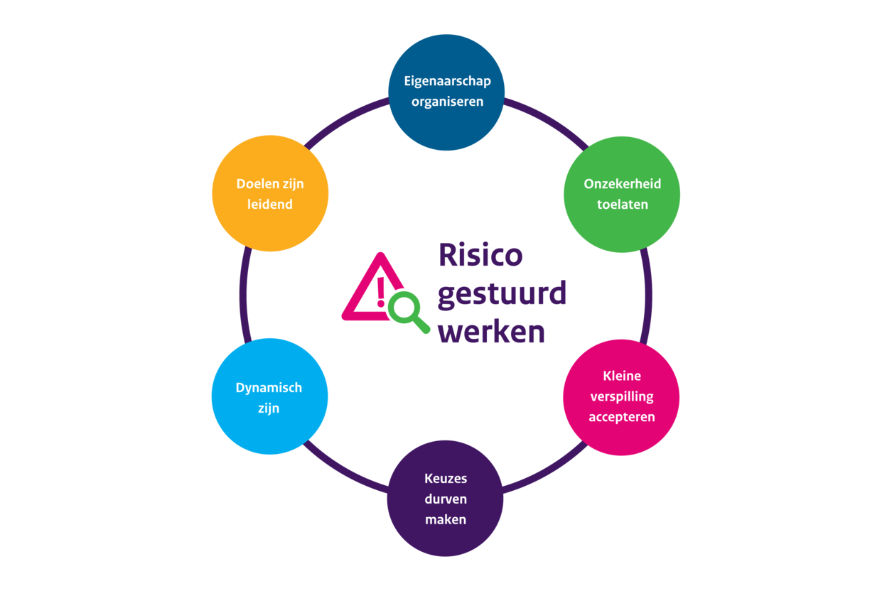 RGW gaat over het continu omgaan met doelen, risico’s en kansen. Wij doen dit door het toepassen van risicomanagement conform de PDCA-cyclus (Plan-Do-Check-Act). RGW houdt in dat niet alle risico's volledig te overzien of te vermijden zijn, maar dat doelen leidend zijn, we onzekerheid toelaten, keuzes durven maken, kleine verspilling accepteren, eigenaarschap organiseren en dit dynamisch toepassen (zie figuur). Dit past in de dynamische en complexe omgeving waarin wij werken.